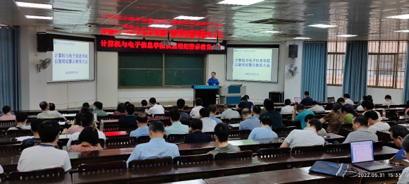 2022年5月31日下午,计算机与电子信息学院组织召开以案明纪警示教育大会,学院全体教职工参加会议。会议由学院党委书记钟诚同志主持。