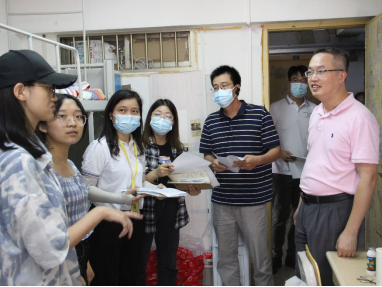 2020年9月9日下午,为了解计算机与电子信息学院2022级新生报到入学后的情况,帮助新生更好地融入西大的学习工作生活,学院党委书记钟诚教授、党委副书记邓珍琪老师、副院长陈宁江教授、副院长赵志刚教授以及辅导员和班主任老师一同走访新生宿舍。
