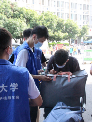 2022年9月8日上午,由学院辅导员、班主任、学生会成员、志愿者以及党员先锋队组成的迎新队伍早早在迎新点等候,负责新生对接、住宿引导、行李搬运等工作,为2022级新生顺利注册报到保驾护航。