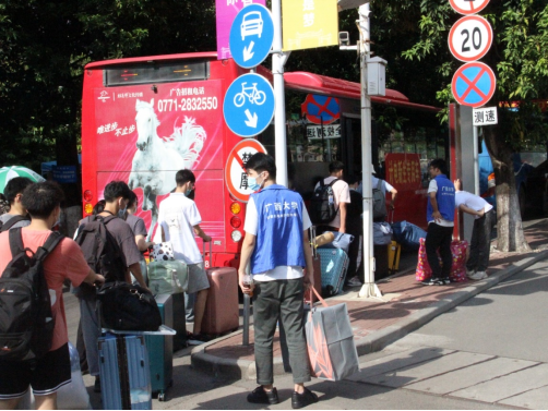 学院专车转送新同学前往宿舍