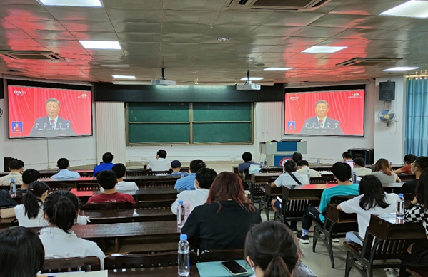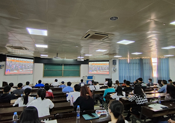 2022年10月16日上午10点,举国关注、举世瞩目的中国共产党第二十次全国代表大会在北京隆重开幕。党的二十大是在全党全国各族人民迈上全面建设社会主义现代化国家新征程、向第二个百年奋斗目标进军的关键时刻召开的一次十分重要的大会。计算机与电子信息学院组织学院党政领导、学院党委委员、学院纪委委员,专职组织员,各支部书记和副书记,各支部党员、发展对象和入党积极分子代表等,在学院214报告厅集体收看现场直播;各系(部、中心、室)、各学生班级以系(部、中心、室)、班级或宿舍为单位组织师生收看现场直播。