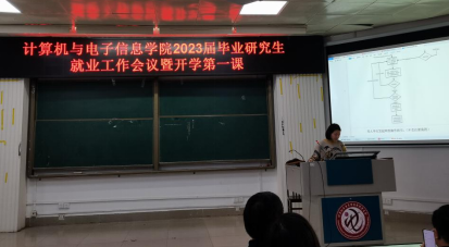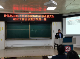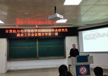 2023年3月1日,计算机与电子信息学院2023届毕业研究生就业工作会议暨开学第一课在学院214报告厅召开。学院党委书记钟诚教授、院长武新章教授、党委副书记邓珍琪老师、副院长陈宁江教授以及学院研究生办公室秘书和辅导员参会,辅导员杨洋老师主持大会。