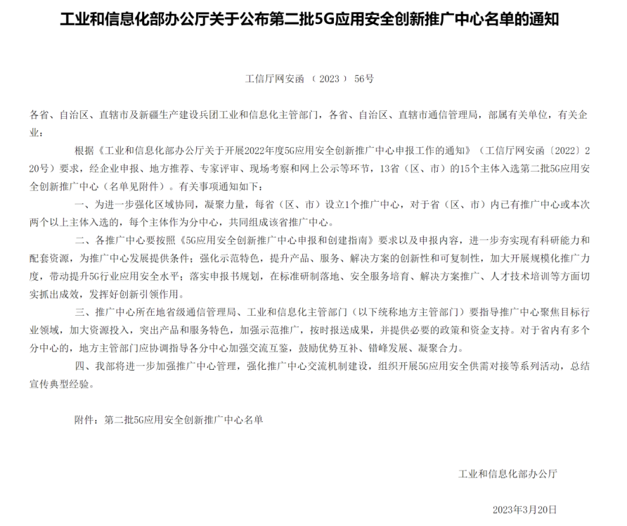 近日,中华人民共和国工业和信息化部公布了2022年度5G应用安全创新推广中心评选结果,由广西通信管理局与广西壮族自治区工业和信息化厅联合推荐,广西移动公司牵头联合广西大学等单位申报的5G应用安全创新推广中心(广西)成功入选。