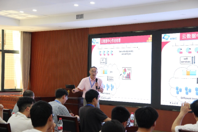 图3 沈鸿教授对云数据中心作业处理过程进行介绍讲解