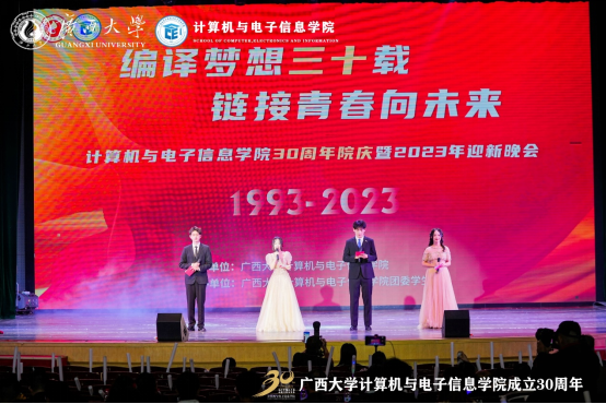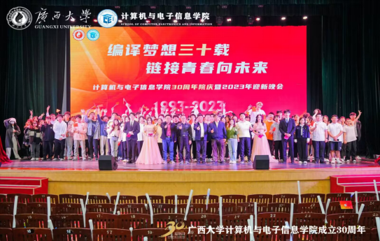 2023年11月19日晚,英国上市公司365“编译梦想三十载,链接青春向未来”三十周年院庆晚会暨2023年迎新晚会于学校大礼堂圆满落幕。计算机与电子信息学院领导、师生和校友代表欢聚一堂,在精彩的文艺表演中共同庆祝学院成立30周年。