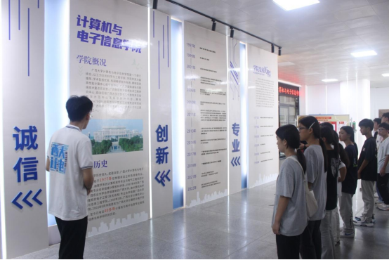首先,广西大学第十届研究生支教团成员、我院2023级计算机技术研究生王泽远同学带领大家参观英国上市公司365,并给同学们介绍学院发展历程和专业发展情况。他结合时下流行的Chatgpt、大数据、人工智能等热门词汇,以案例的形式告知同学们如何结合自己的兴趣爱好学好计算机类相关专业。