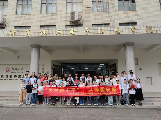 2024年7月16日下午,广西百色市那坡县民族初级中学和城厢镇初级中学来我院研学参观,开展“大手拉小手,共铸国安墙”为主题的暑期活动。此次活动,由广西大学团委指导的研究生支教团团长出君儒同学带队,开展集理论宣讲与专业实践相结合的活动。活动由研究生支教团成员王泽远、陆满替两位同学领队讲解,学院辅导员黄柏雄老师及学生50余人参加。