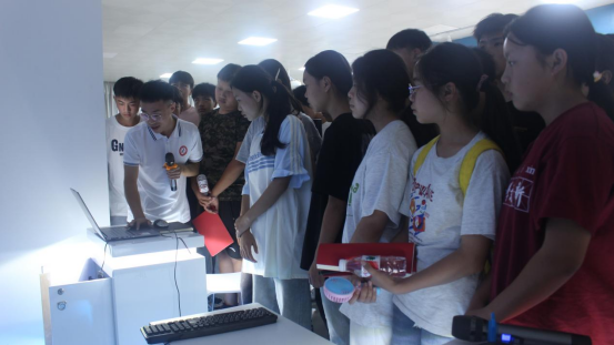 王泽远(左一)同学介绍学院发展历程