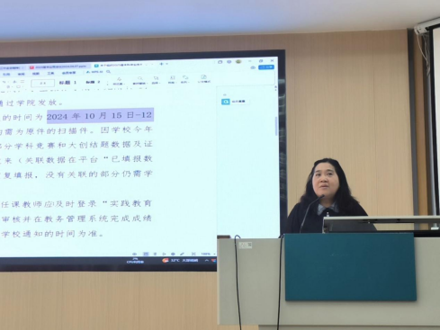 大会第三项,教学办公室甘瑜萍老师对照毕业相关政策文件,针对毕业学分要求和课程替换等问题进行详细解读。此外,她还特别强调了毕业前同学们需要完成的各项准备工作,以确保每位同学都能顺利毕业。
