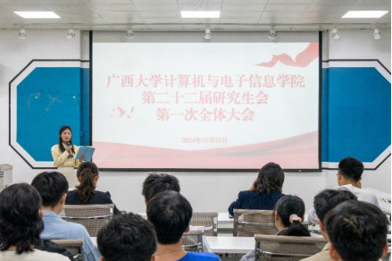 会议第三项,主席团成员出君儒同学对学院研究生会主席团分管部门情况进行简单介绍,并就近期即将开展的“学生干部训练营”等工作做出详细安排。