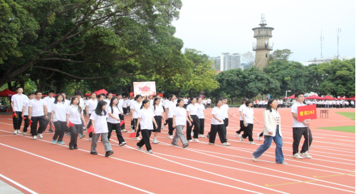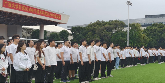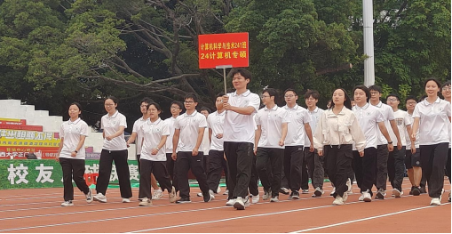2024年10月27日,计算机与电子信息学院2024年运动会在西校园田径场顺利举行。学院党委书记赵进创教授、常务副院长张振荣教授、党委副书记邓珍琪老师、副院长郑嘉利教授以及辅导员和班主任出席开幕式。