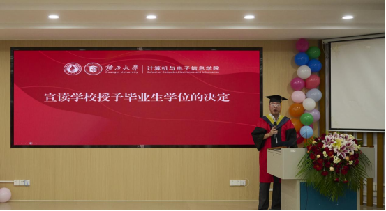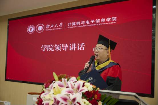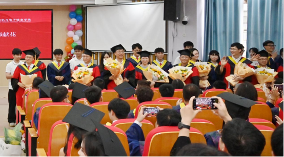 常务副院长张振荣教授致以毕业寄语。他深情回顾了毕业生们在学院度过的灿烂青春,赞扬了他们在学业、思想及社会责任上的卓越表现,对即将开启新程的同学提出了三点期望:一是永葆创新锐气,勇攀科技高峰。将“创新”融入血脉,让“创造”成为习惯。二是坚守科技伦理,恪守行业底线。时刻牢记科技向善的宗旨,做有温度、有担当的科技工作者。三是胸怀家国天下,服务区域发展。将个人理想融入国家发展和民族复兴的伟大事业中,用所学所长服务社会、贡献国家。