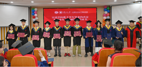 副院长郑嘉利教授宣读了学校准予学生毕业的决定,常务副院长张振荣教授为毕业生代表颁发毕业证书。这份证书不仅是学业成果的证明,更是青春奋斗的勋章。