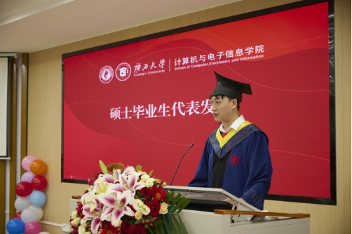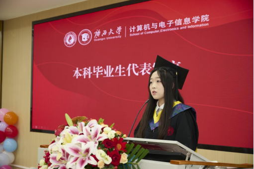 毕业本科生代表信息安全211班任佳蓉同学和毕业研究生代表22级计算机技术专硕班王子威同学先后上台发言。他们深情回顾了校园生活的点滴,表达了对母校和学院培养之恩的深深感激,表示将永远铭记师长的谆谆教诲、父母的默默托举、同窗的无私相助,同时将用扎实专业能力回应时代召唤,为数字中国建设贡献青年力量。