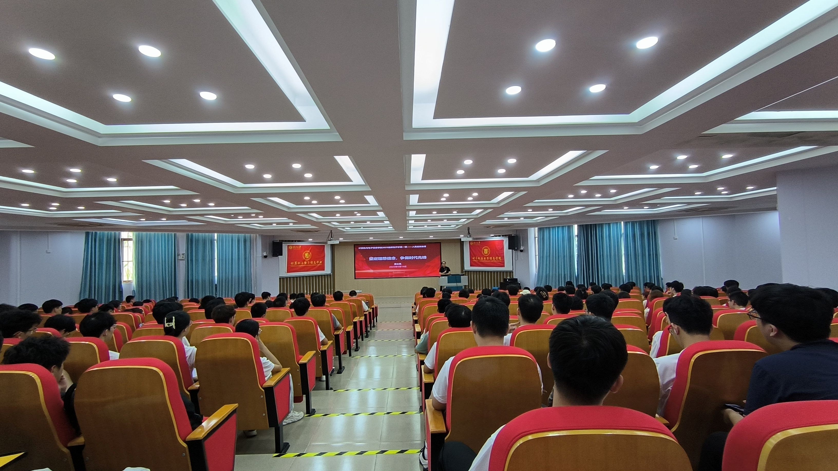 2025年9月16日和17日下午,计算机与电子信息学院/人工智能学院2025级新生齐聚学院214报告厅,迎来大学生涯具有重要意义的“入党启蒙教育第一课”。这场以《坚定理想信念,争做时代先锋》为主题的入党启蒙教育,旨在教育引导大学生新生听党话、感党恩、跟党走,积极向党组织靠拢。