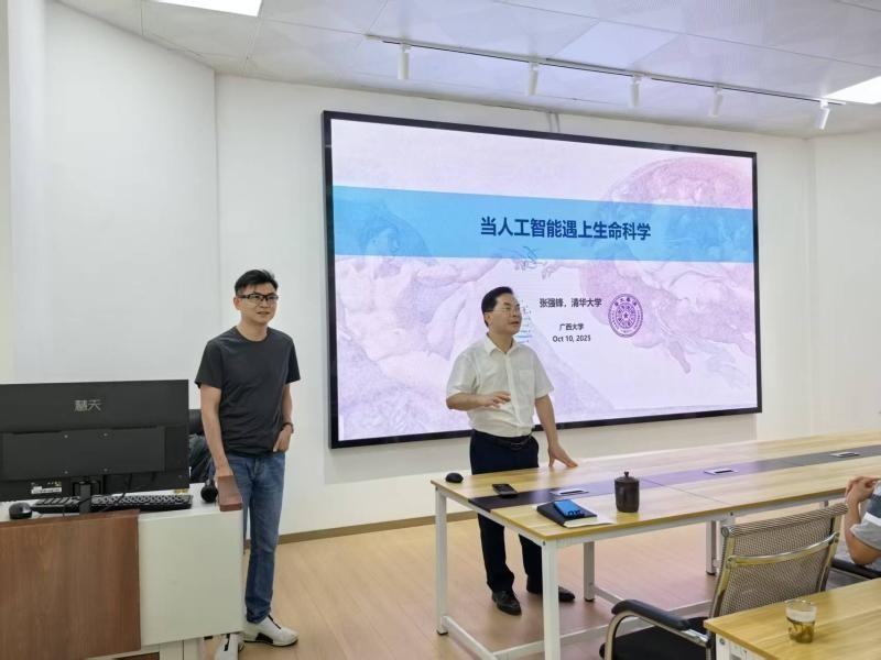 为拓展师生学术视野,推动人工智能的跨学科对话与前沿探索,计算机与电子信息学院于2025年10月10日上午,在学院一楼报告厅成功举办了“计电讲坛”系列活动第44期学术报告会。本次报告以“当人工智能遇上生命科学”为主题,特邀清华大学张强锋研究员作为主讲嘉宾,报告会由钟诚教授主持。