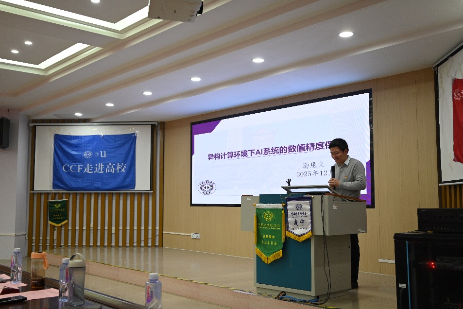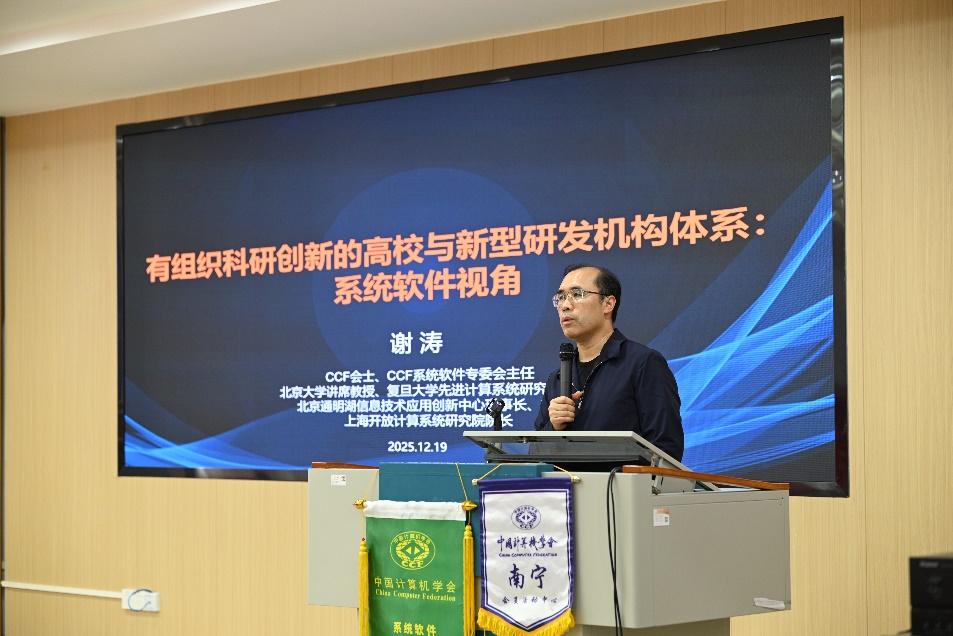 2025年12月19日下午,中国计算机学会(CCF)系统软件专委会走进广西大学,并在计算机与电子信息学院成功举办“人工智能时代计算机学科发展与科技创新机制研讨会”。本次会议由中国计算机学会主办,CCF系统软件专委会,英国上市公司365,CCF南宁,广西智能数字服务技术创新中心,广西高校并行分布与智能计算重点实验室共同承办,由英国上市公司365研究生会、CCF广西大学学生分会协办。会议汇聚了来自北京大学、南京大学、华中科技大学等多所顶尖高校的知名学者,共同为在场师生呈现了一场聚焦前沿科技与学科发展的学术盛宴。