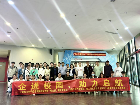 2024年4月9日,计算机与电子信息学院研究生第一党支部、第五党支部和本科生第二党支部、第三党支部在学校大学生活动中心联合开展助力学院2024届毕业生春季双选会志愿服务活动,为参加双选会的41家企业和500多名毕业生提供良好的环境和周到的服务。