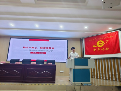 会议第二项,经验分享环节,邀请了4位同学分享自己的保研、考研经验。首先是路振宇同学分享保研经验,他以专业成绩第一名成功推免至东南大学,结合自身的学习经验,他将推免政策、推免注意事项等逐一和同学们分享。接着是张胜同学分享保研经验,他推免至华南理工大学,结合自己的学习和竞赛情况,他分享自己如何从推免边缘到逆袭上岸的经验。第三是陈聪同学分享考研经验,作为广西大学考研学生代表,他就如何备战考试、如何选择专业及如何选择学校与同学们分享。最后是出君儒同学分享研究生支教团经验,作为广西大学第十一届研究生支教团的成员,他为同学们详细解读研究生支教团的保研政策,并结合自己在支教团的工作感受,为大家揭开研究生支教生活的神秘面纱。