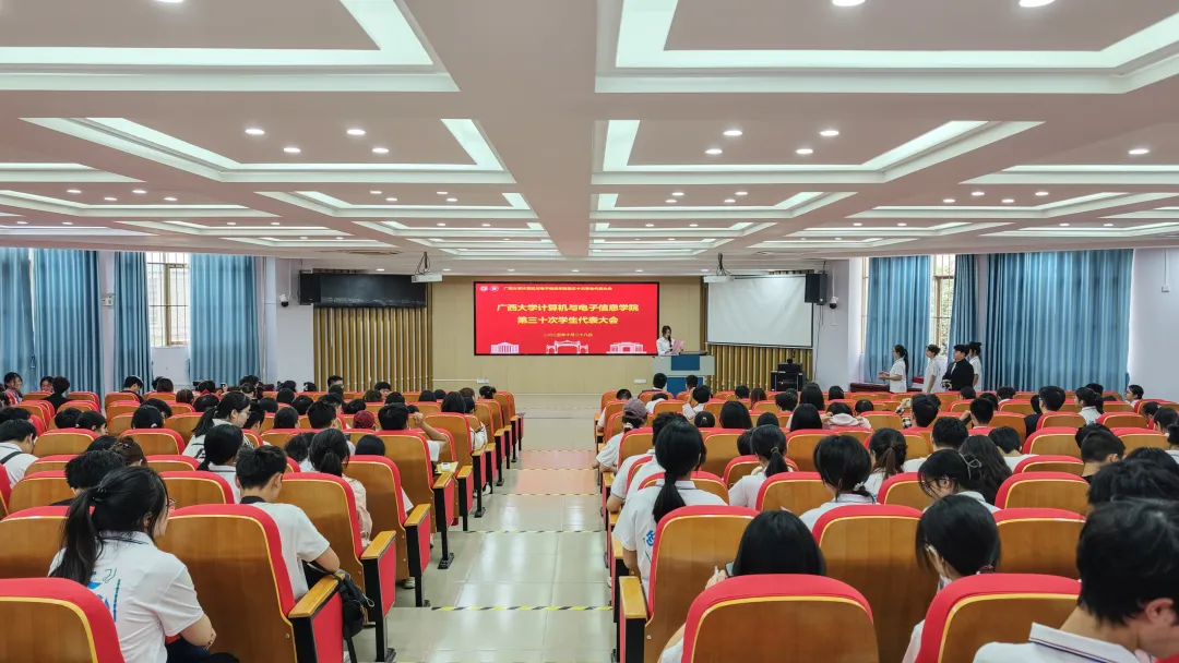 2025年10月28日下午,计算机与电子信息学院第三十次学生代表大会在学院214报告厅顺利召开。学院领导,辅导员,我院学生会代表和兄弟学生会代表等出席会议。本次会议共有165名代表,25名请假,符合法定代表人数。会议分为预备会议和正式会议。