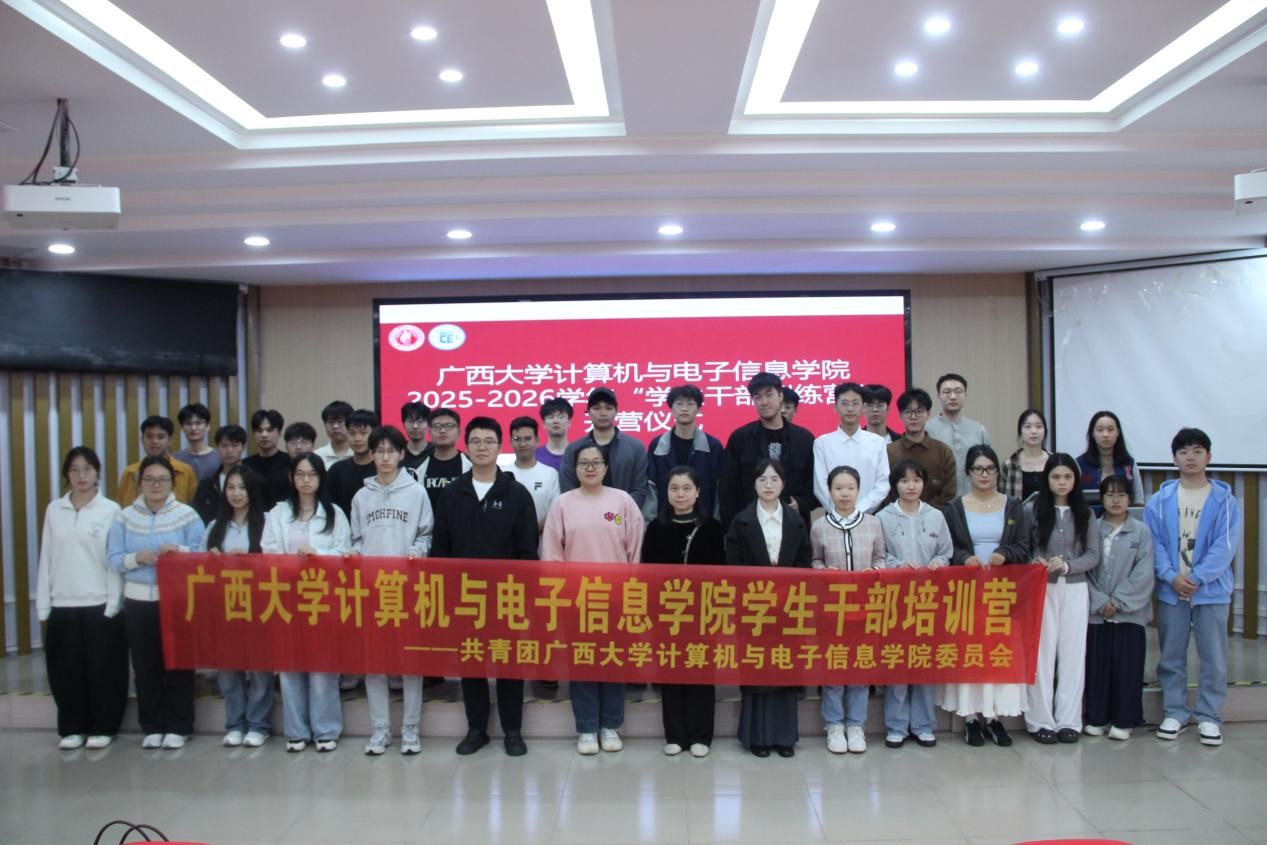 2025年11月6日下午,计算机与电子信息学院在学院214报告厅举行了“学生干部训练营”的开营仪式。我院党委副书记夏士岚老师,团委书记杨洋老师,研究生办公室秘书胡亮青老师,辅导员黄千芊老师、胡刚老师和潘秋香老师出席本次会议,活动由研究生会成员王浩森同学主持。