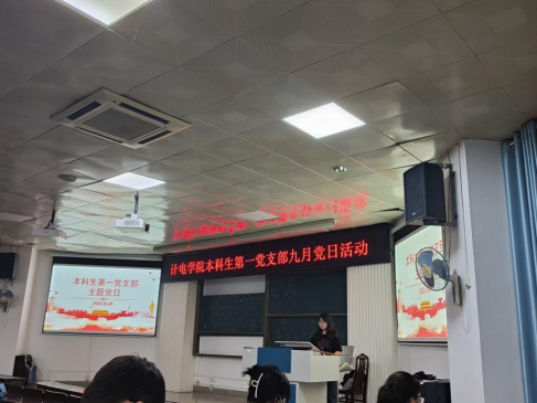 2022915日,计算机与电子信息学院本科生第一党支部在学院214教室组织开展9月份主题党日活动,本次主题党日活动的主题为学习《习近平谈治国理政》第四卷第十二章,本科生第一党支部全体党员参加。
