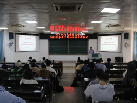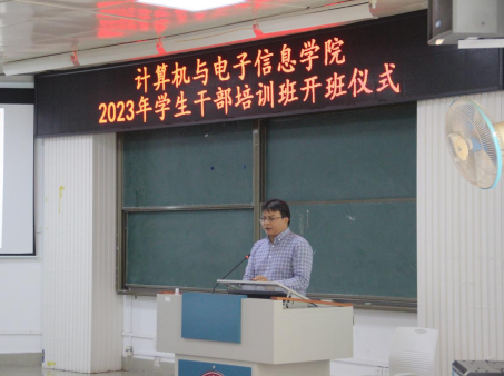 为深入学习贯彻党的二十大精神,进一步提高我院学生干部理论素养与工作能力,增强学生干部的全局意识、服务意识、责任意识、效率意识和创新意识,增强学生干部队伍的凝聚力和战斗力,更好地发挥学生干部的先锋模范作用,2023年4月25日下午,计算机与电子信息学院在学院214报告厅,组织举办2023年学生干部培训班开班仪式暨第一期培训。学院党委副书记邓珍琪老师、辅导员杨洋老师、电子信息工程系主任张学军老师,以及学院本科生、研究生非毕业班的班长、团支书、学习委员及院团委学生会委员、研究生会全体学生干部参加培训。会议由黄康平同学主持。