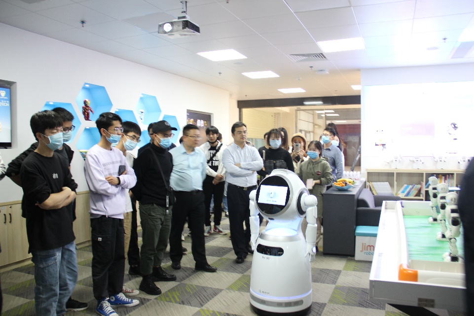 首先,大型商用机器人Cruzr带领学院师生参观公司,老师和同学们都为Cruzr的精彩讲解所吸引,并不断响起热烈的掌声。